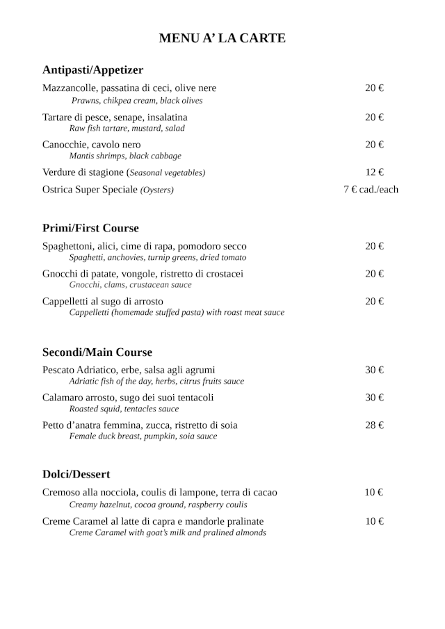 8.5/10Good but be aware that there is a cover “coperto” or table charge of €5. per person. Better to order a bottle of wine than by the glass, could get more expensive than you think.