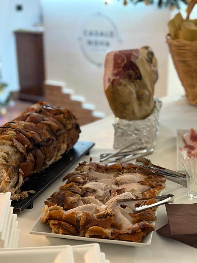 - Gnocchi morbidi avvolti da una fonduta vellutata di Parmigiano, arricchita da scamorza fusa e profumata con tartufo. A completare il piatto, chips croccanti di prosciutto crudo di Bassiano, che aggiungono una nota sapida e una piacevole contrasto di consistenze. Un primo piatto intenso e avvolgente, dove cremosità, profumi e croccantezza si incontrano in perfetto equilibrio