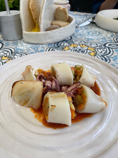 10/10Great food and atmosphere. We stayed in the garden and it was perfect. I loved my stuffed calamari. Totally recommend.