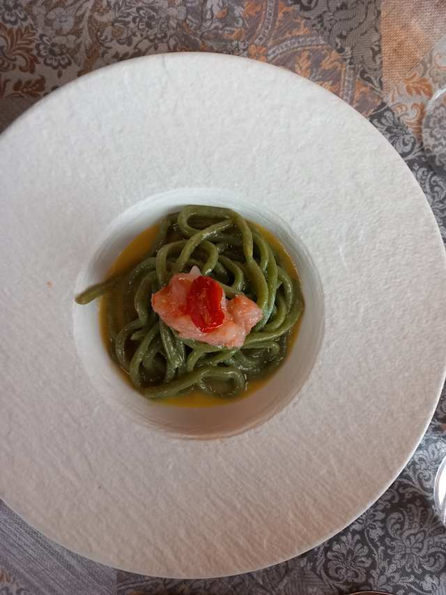 - Gnocchetti di patate con anemone di mare, salicornia e canocchia marinata