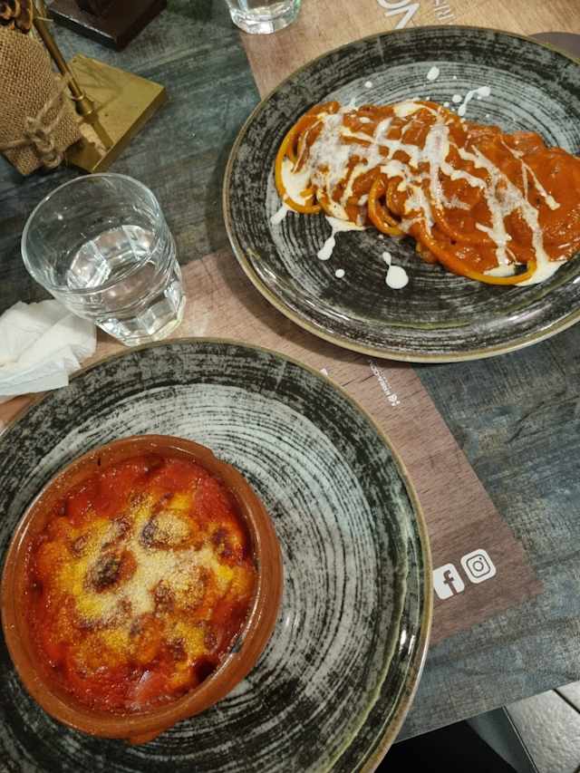 - Ragù di salsiccia, pecorino, parmigiano, peperoncino e fonduta di bufala
