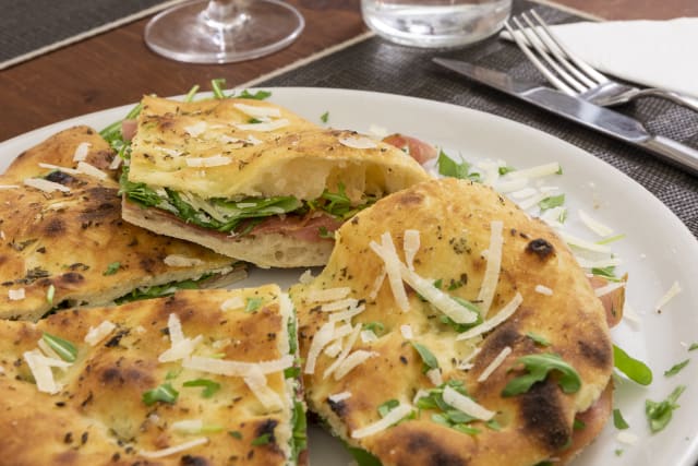 Focaccia ripiena di mortadella, stracciatella e pistacchio