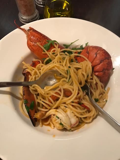 6.5/10Delicious food served by very friendly staff. Unfortunately it took a very long time to arrive at the table despite there being only a few others in the restaurant. Ordered spaghetti with prawns and pesto and spaghetti with lobster. Lots of spaghetti but a disappointing amount of prawn and lobster. Very expensive for the content.
