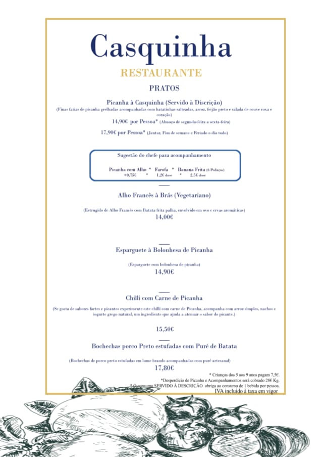 PortugueseSteakhouseEuropeanMeat CuisineBarbecueSchnitzelGood for familiesLunchOutdoor diningWith friendsVegetarian dishesWifi