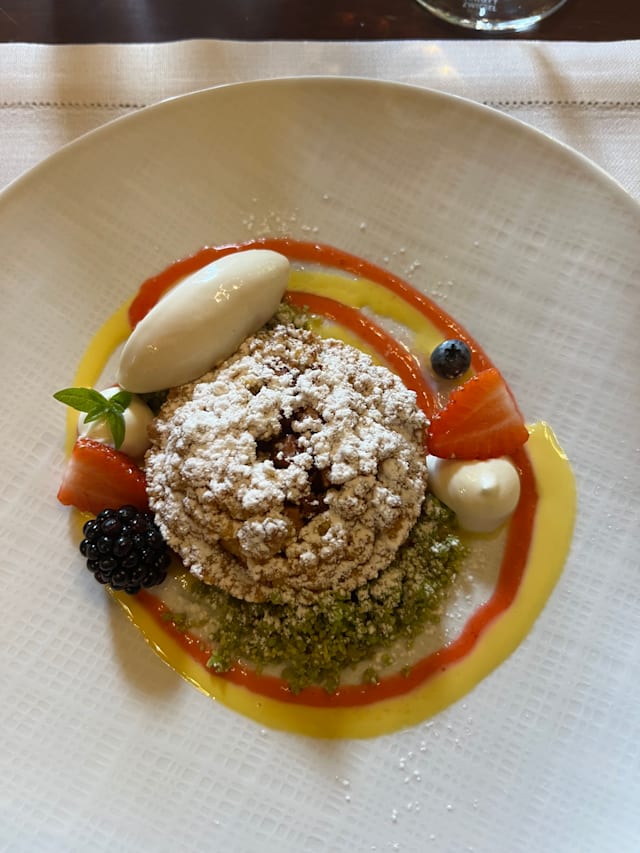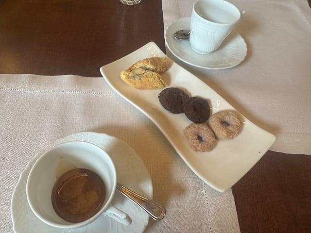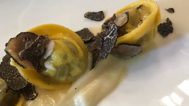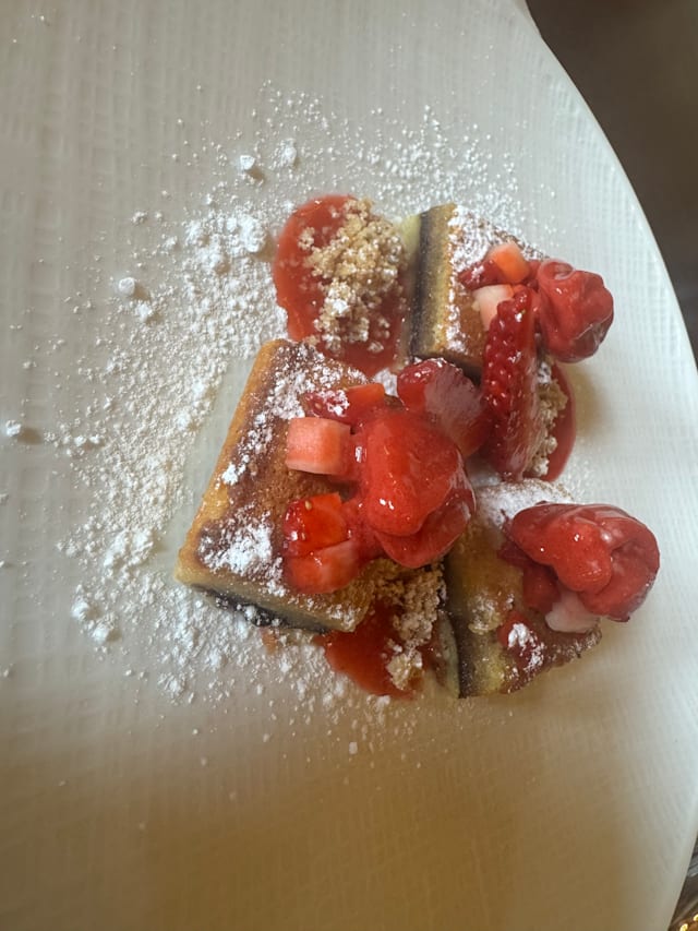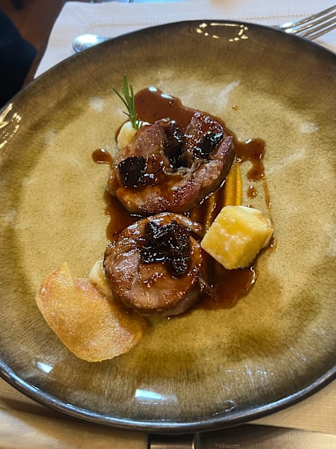 8/10Had the “menu degustazione”, senza dolce. Interesting mix and conception, beautiful presentation, and a fantastic wine pairing with some of the offerings of the house. No fault there, a very memorable experience. Yet, the service seemed a bit rushed, for no apparent reason (the taverna is only open for lunch). I had to intervene to avoid the bread, oil and balsamico being taken away before I was done with my meal, and the waitress was particularly interested in establishing how soon she could bring my coffee (and the bill). Maybe some additional orientation in table service would be advisable. Otherwise, having a meal at this environment remains one if the highlights of a visit to the Montalcino area!