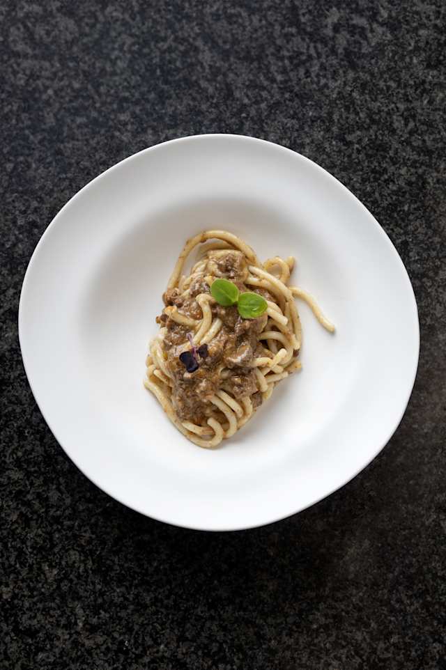 - Tortelli maremmani al ragù di manzo battuto al coltello