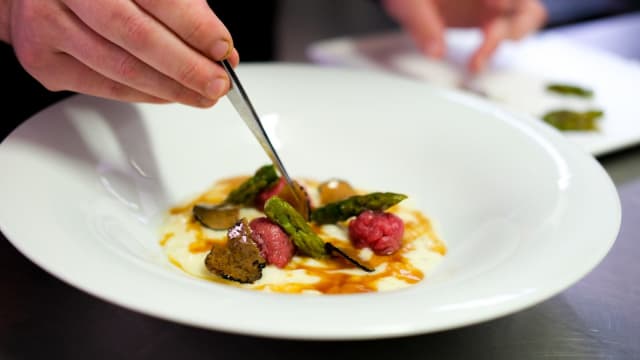 Risotto al ragù di porcini, tartufo e asparagi
