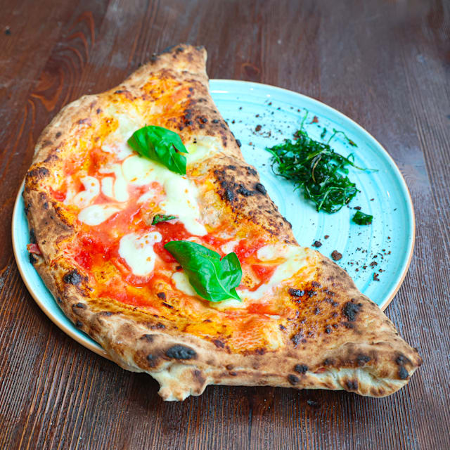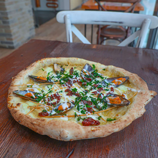 Pizza ai frutti di mare, olio e.v.o., basilico