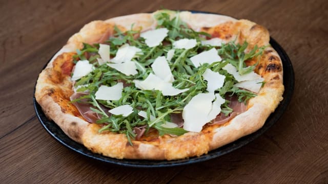 Tomaten, kaas, champignons, ham, salami, spek, fricandeau, ossenhaas, uien, gorgonzola en pikant