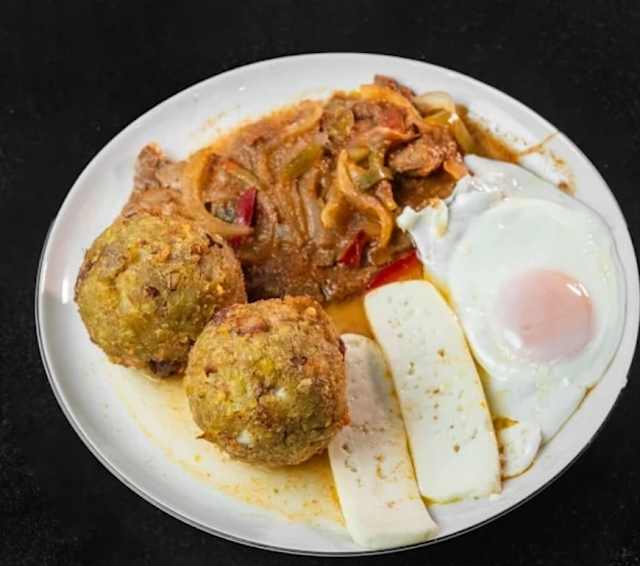 - Bolones con bistec guisado