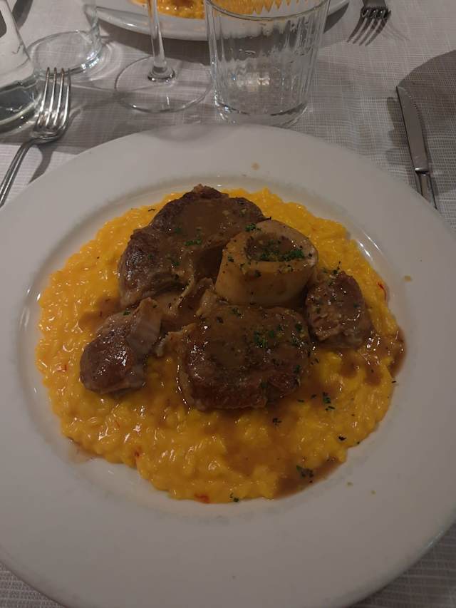 10/10Great food, from the primipiati until the master piece OSSO BUCCO with saffroon risotto, i had, just amazing refreshing perfectly low cooking to deliver the sweetest veal meat and its bone. Big portions. What about the service, aswell perfect, friendly, profesionnal,great advices Witherspoon all the time à smile and kind attention, we'll defenetly recommand and go back before we live Milano
