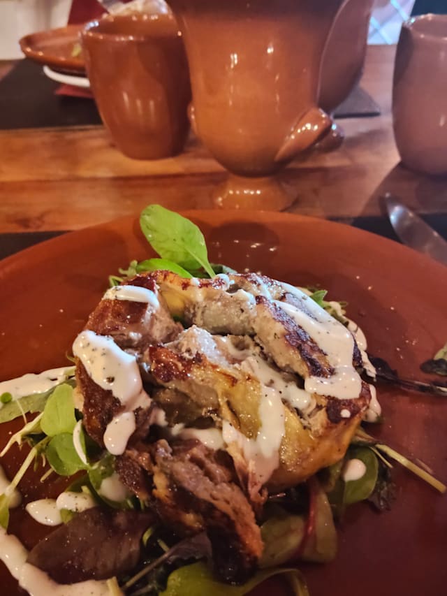 10/10The atmosphere...ancient Roman villa setting with authentically reproduced frescoes in Pompeiian colors, and glazed earthenware for plates and glasses...initially got our attention, along with many dishes composed with ingredients available in ancient Pompeii. We were prepared for a touristy gimmick like similar set-ups in Scotland and Ireland but were delightfully surprised with the superb quality of the food. Dishes were imaginatively constructed with fresh ingredients. Best seared tuna I have ever had and the beef terrine with polenta was uniquely delicious. Other dishes also incredibly tasty with creative twists...too many to detail here. Wish we lived closer so we could go back every month and try something different. We loved the historical nods in ambience and menu, but if you don't...or if you've been burned before...COME TO CAUPONA FOR THE DELICIOUS FOOD!!! 😋