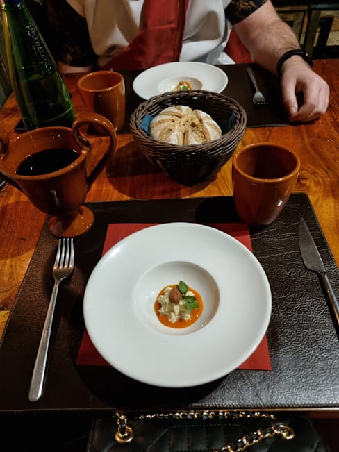 10/10+3The food was incredible, the staff were wonderful, and the atmosphere was simply beautiful, decorated with images of ancient frescoes, solid wooden tables and big goblets for wine. It is clear the owners and staff put a lot of care and attention to detail into creating a wonderful experience for visitors, foodies and history buffs alike! An unforgettable experience and a must-see.