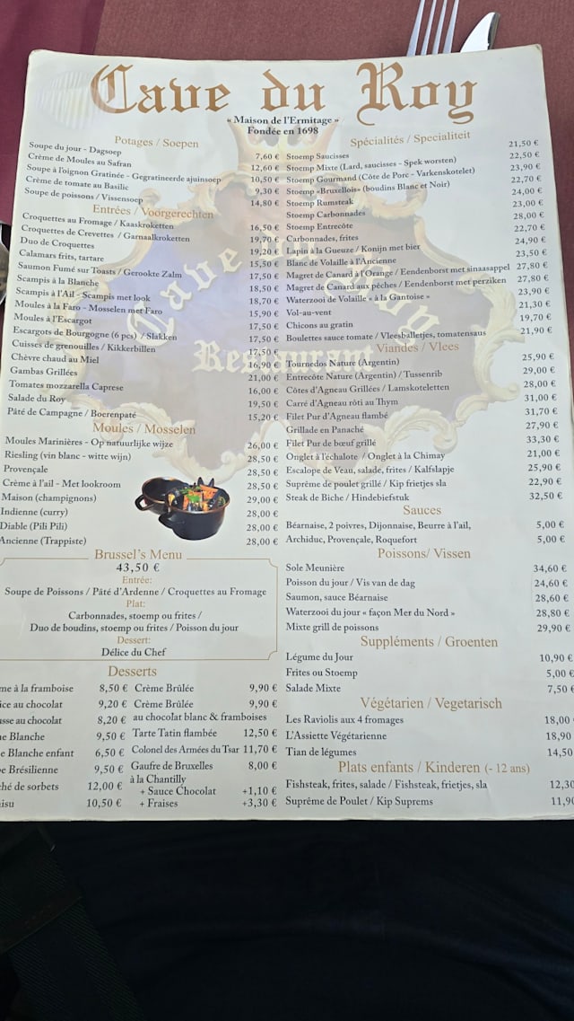 If you plan to eat at Cave du Roy, the average price should be around €39. The average price is calculated based on appetizer/entrée or entrée/dessert, excluding drinks. Prices have been provided by the restaurant.