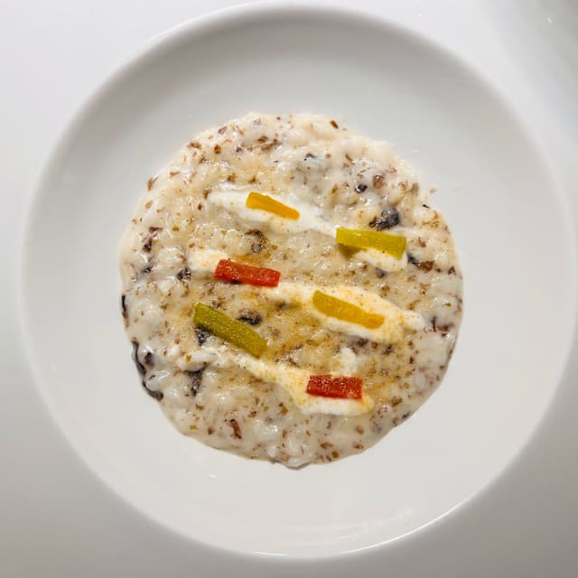 Risotto, Rafano, Alga al Marsala, Peperone e Amaretto