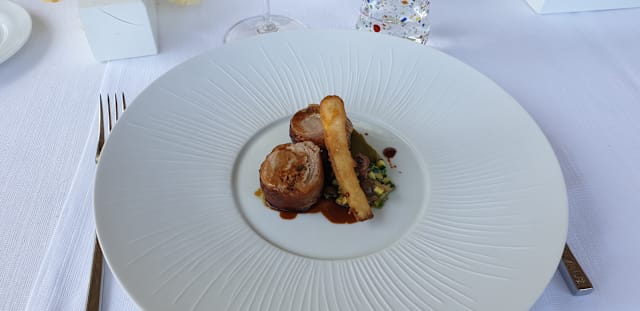 Maialino, Albicocche Arrosto, Spinacino e Gel di Champagne
