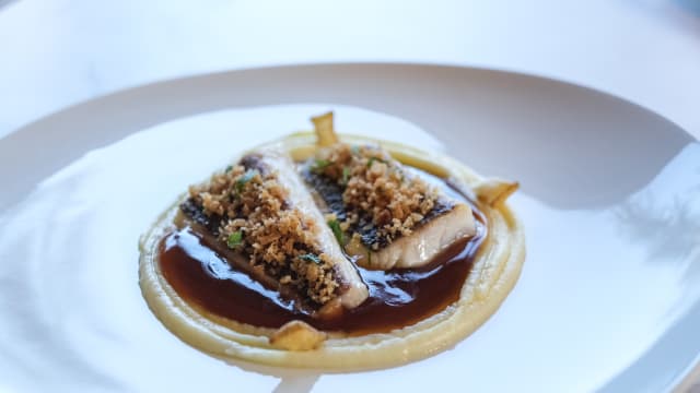 Lubina Salvaje, Guiso Cremoso De Lentejas De Matanza Y Buñuelo De Huevo