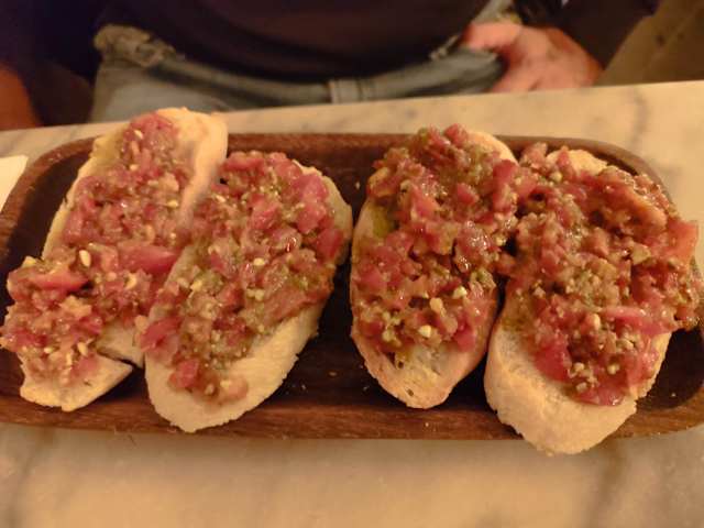 - Grilled bread with chopped tomatoes and extra virgin olive oil finished with basil