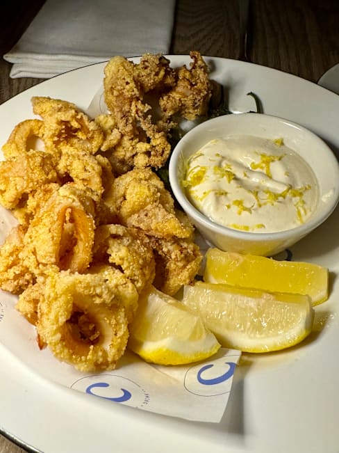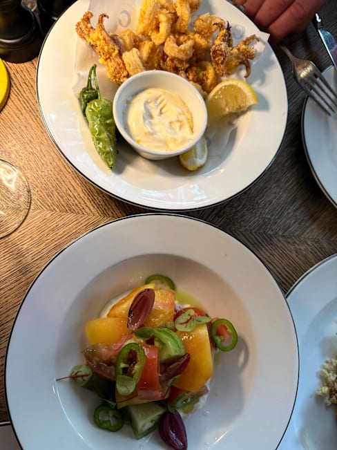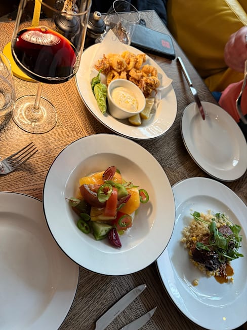 8/10📍Located in the city center of Amsterdam. Hidden in hotel Witt ground floor! 🪑design of the restaurant was nice. Nicely decorated. Ambiance was a bit different - hotel lobby mixed with restaurant vibes. 🛎️ Service was good - very friendly waiter and they take really good care of allergies!! 📋The menu did not have many options but we found something! 💰It is not pricy but we got a deal by reservation via TheFork 50% off in the food. So our total bill was only €37,50. 2 glasses of wine and 3 Starters. But the the starters were so big that we did not need a main anymore. 🍽️ I loved the calamari! They were fresh and perfectly balanced in terms of cooking and flavour. 🅿️ Difficult as it is city center Amsterdam. A lot of tram stations in front. 🚽Toilet was very clean with nice hand soap!