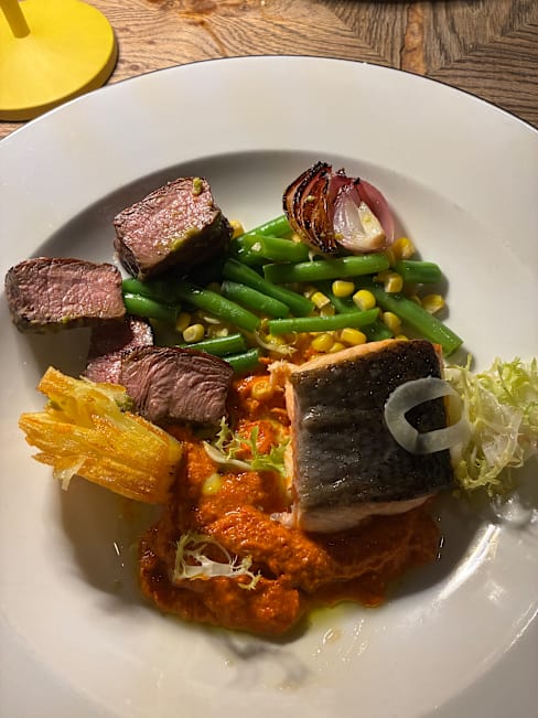 8.5/10Food was good, mains on reduced menu are quite small compared to the starters. Had the salmon, steak and Calamari. Calamari was the best.