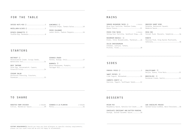 8/10Good evening had at Celia. Food was good and service was good. Was a bit too noisy at times. Dishes falling in the kitchen and the making of cocktails behind the bar was really noisy....