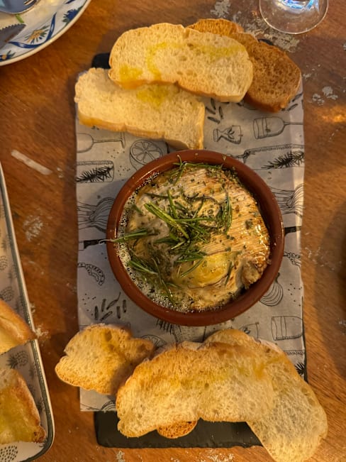 8.5/10Cute place. We ate upstairs in chairs overlooking the street. This is elevated tapas. We had the fried calamari, baked Camembert with rosemary and honey, meatballs in gravy with mushrooms and the special which was Argentinian beef with chimichurri sauce. The beef was a bit chewy but the flavor was amazing. The cheese and meatballs were great too. We had a couple of glasses of red wine wine we enjoyed.