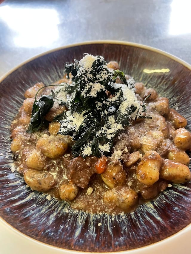 Piatto unico con gnocchi al pomodoro cotoletta e patatine