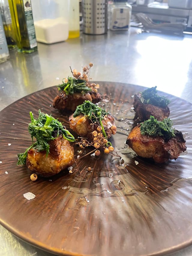 Saltimbocca di cinghiale alla salvia su cicoria ripassata
