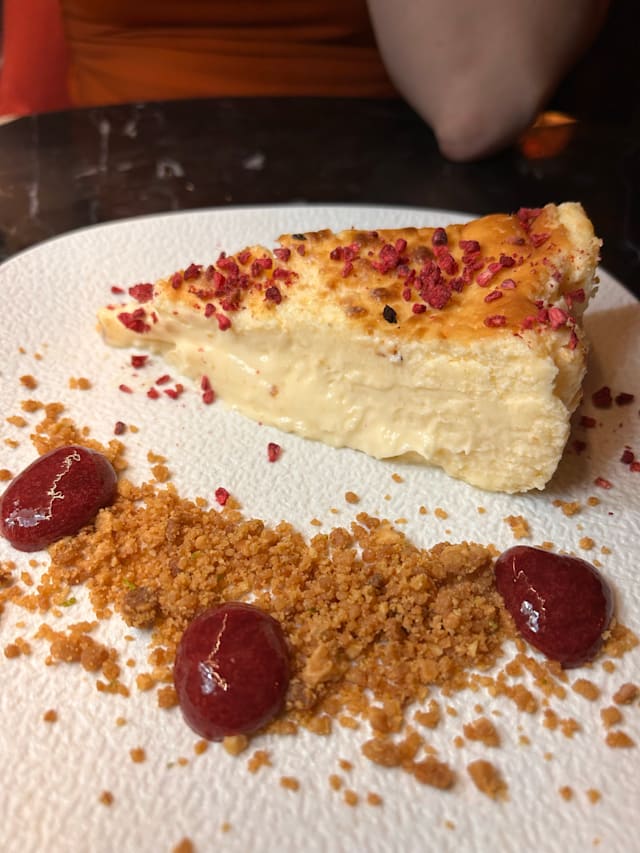 Aniseed sponge cake topped with caramelized mascarpone and cream ice cream with lime zest