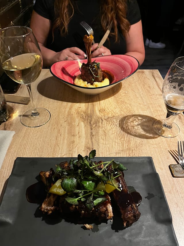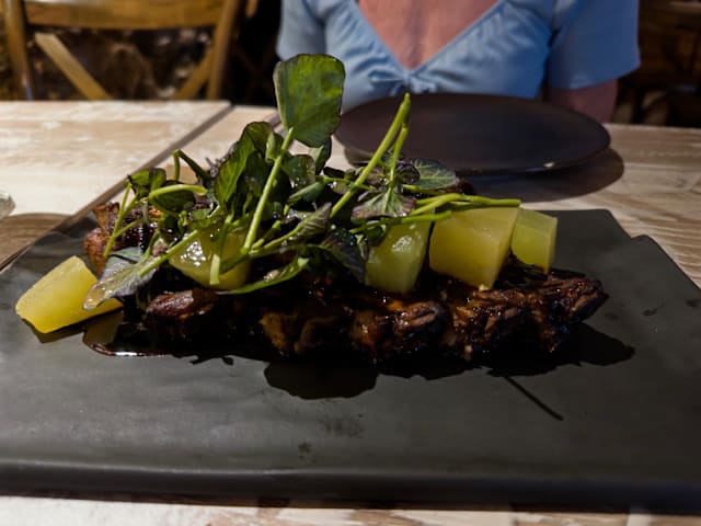 Iberian ribs with Yakiniku sauce and honey and watercress salad with sour apple