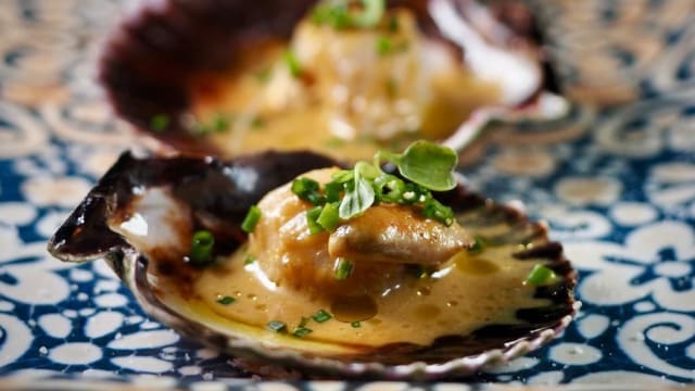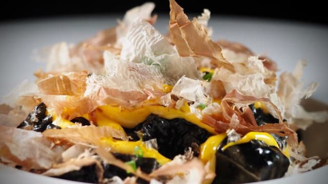 Calamar de playa con parmentier trufado y mayonesa japonesa.