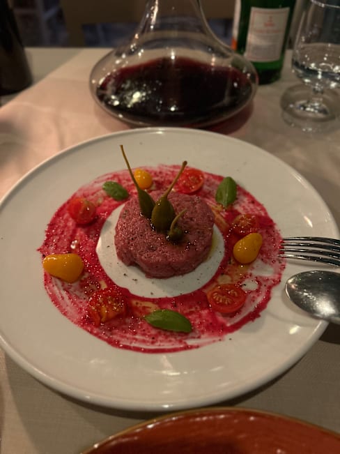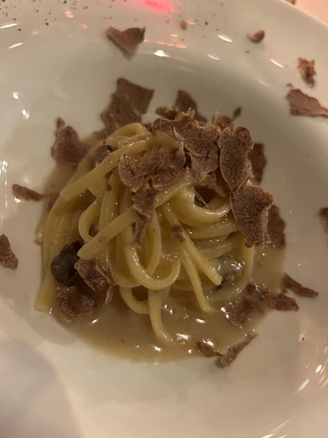 10/10Everything about this experience was enjoyable. We were greeted warmly and felt welcome. The staff was friendly and tolerant with our attempts at speaking Italian. The decor was interesting and comfortable. Our host was very knowledgeable about wine and the wine options were extensive. Each dish was simply excellent. Our truffle pasta was truly one of the best things I have ever eaten. I am plant based so had greek salad and rosemary potatoes as my main and both were delicious. My husband said his steak was tender and perfectly seasoned and cooked. We skipped dessert because we were so full. This was the best meal I have had in a long while.