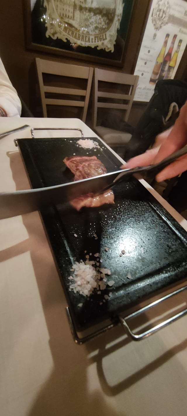 10/10Very good food especially the sizzling steak on stone, the welcome dish and contorni. Helpful and cheerful staff, good English spoken if needed.