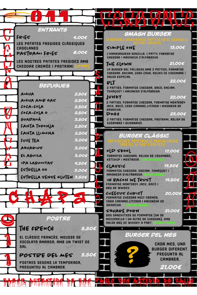 011 Burger Bar nace de la cultura urbana de São Paulo y la trae al corazón de Barcelona. Una hamburguesería que apuesta por producto seleccionado y recetas directas. Burgers con carácter, buena música y un ambiente pensado para disfrutar de una gran hamburguesa.