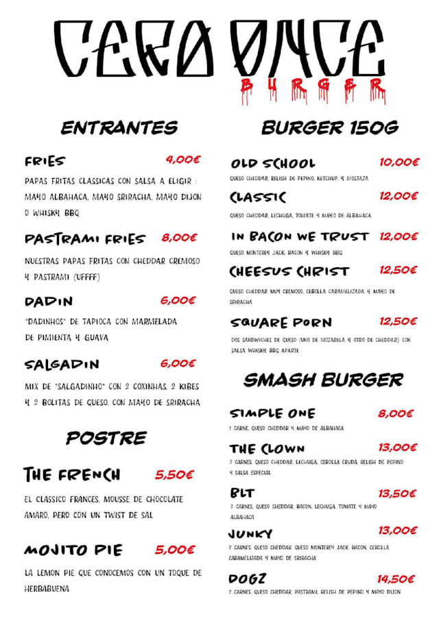 Yes, Cero Once | 011 | Burger is offering 30% off the 'a la carte' menu Reserve your table and enjoy your special discount now on TheFork!