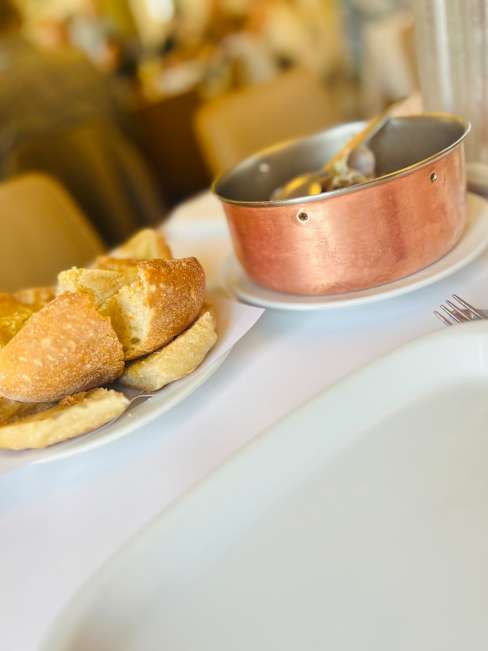 3.5/10The atmosphere inside the restaurant was not pleasant, the staff were laughing and talking to each other so loudly that they were noisier than the guests. It felt more like a place focused on mass service and quick table turnover rather than on creating a nice dining experience. We were served pre-prepared bread that had clearly been toasted and buttered earlier, and by the time it reached our table, even before we placed our order, it was already cold. The food itself was fine, the seafood was fresh, but overall the dishes were quite ordinary. I left the restaurant disappointed.