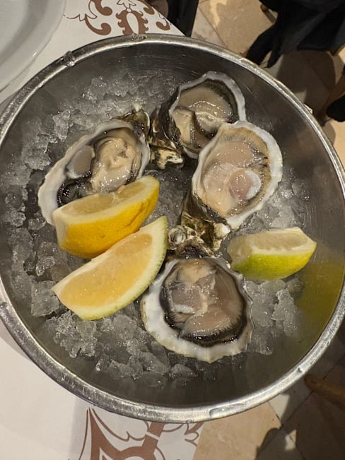 3.5/10The atmosphere inside the restaurant was not pleasant, the staff were laughing and talking to each other so loudly that they were noisier than the guests. It felt more like a place focused on mass service and quick table turnover rather than on creating a nice dining experience. We were served pre-prepared bread that had clearly been toasted and buttered earlier, and by the time it reached our table, even before we placed our order, it was already cold. The food itself was fine, the seafood was fresh, but overall the dishes were quite ordinary. I left the restaurant disappointed.