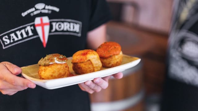 Thank you very much Kathia for sharing your opinion. We are delighted to know that you enjoyed our Tabarlot potatoes and our Sant Jordi menu. All the products we serve are of proximity (km0) as it is a way to help small local businesses. We hope to have the opportunity to welcome you again soon in our craft brewery in the heart of Barcelona.