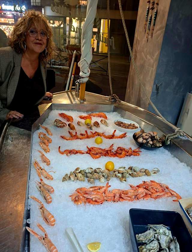 - 6 huîtres fines de claires nº3, 9 bulots, 3 huîtres spéciales Gillardeaux nº3, 1 crevette géante sauvage, 4 petites et 2 grosses gambas bio de Madagascar, 50g de crevettes grises, 2 langoustines, 4 palourdes, 4 amandes, 1 pince de crabe