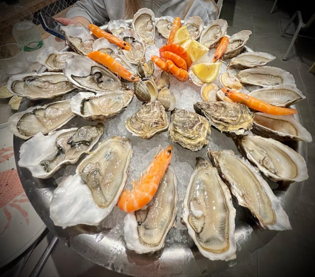 10/10Both oysters and shrimp are delicious. The prawns are especially fresh, Red vinegar and lemon enhance the freshness and add the perfect finishing touch.