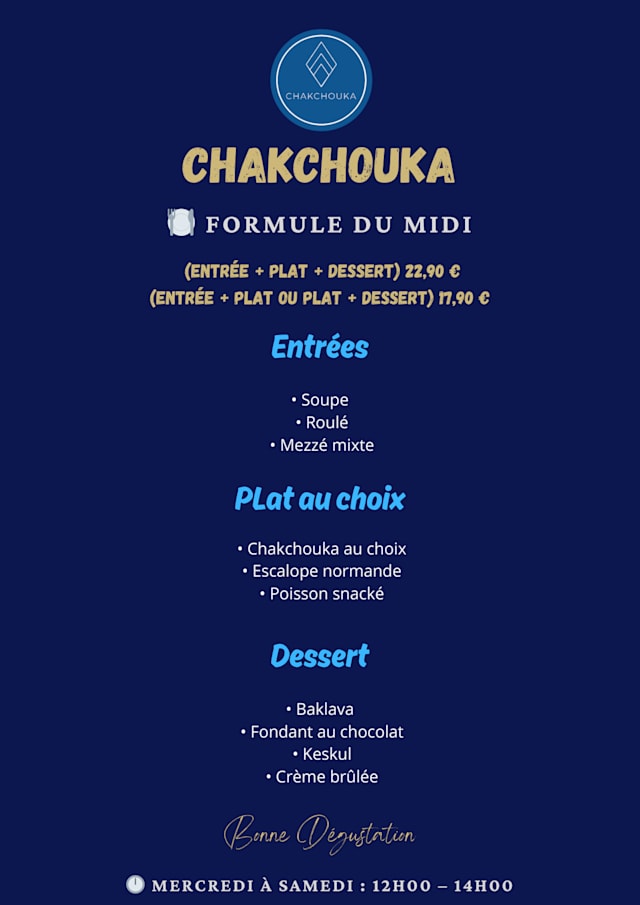 Menu du Midi€17.9 per guest