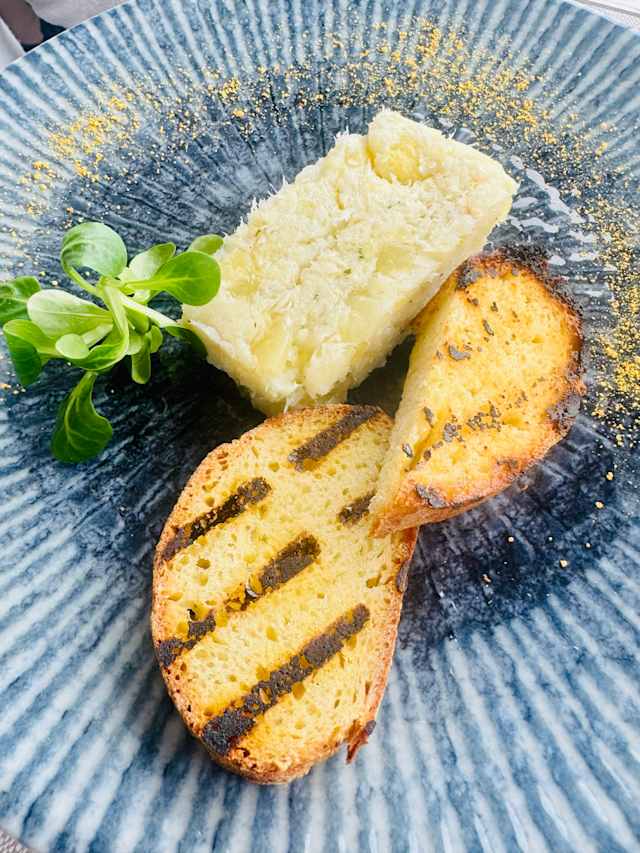 - Sformatino di patate e baccalà con crostino di pane integrale