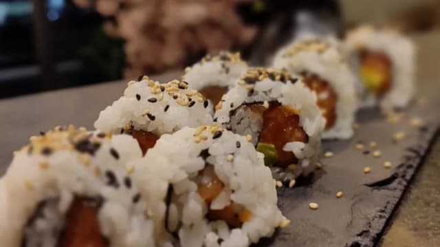 - Riso, alghe, mango, salmone, sesamo