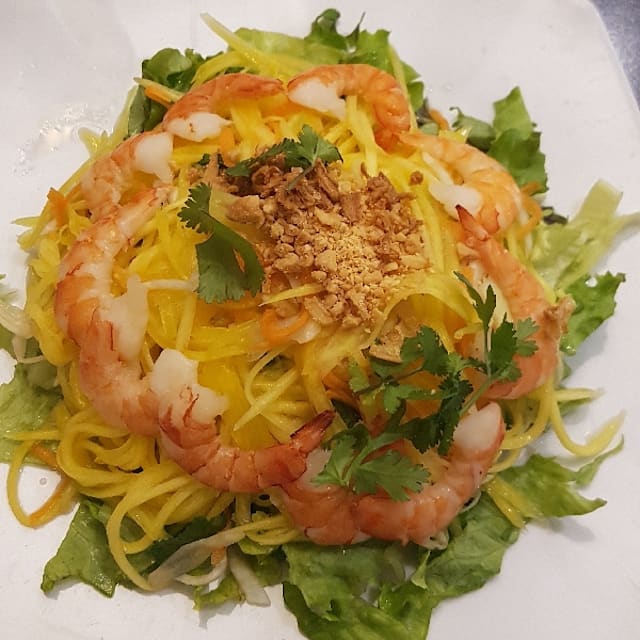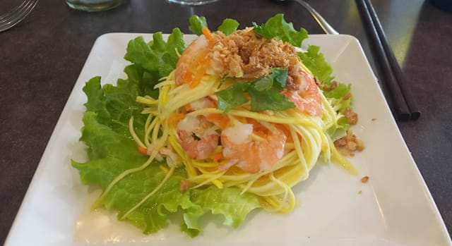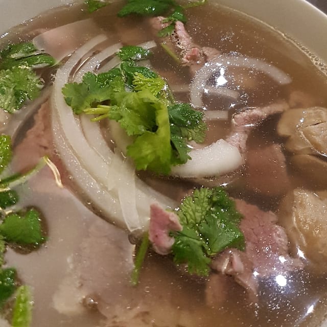 10/10Staff were warm, welcoming, and efficient. We were served our order quickly and correctly. We were not made to feel rushed. The starter of green mango salad was beautifully prepared and delicately flavored. The main courses of chicken pho soup and chicken Bo bun were ample and delicious. Fresh basil, mint and lemon complemented the dishes. The ambiance was relaxed and not noisy. The dining experience was superior.