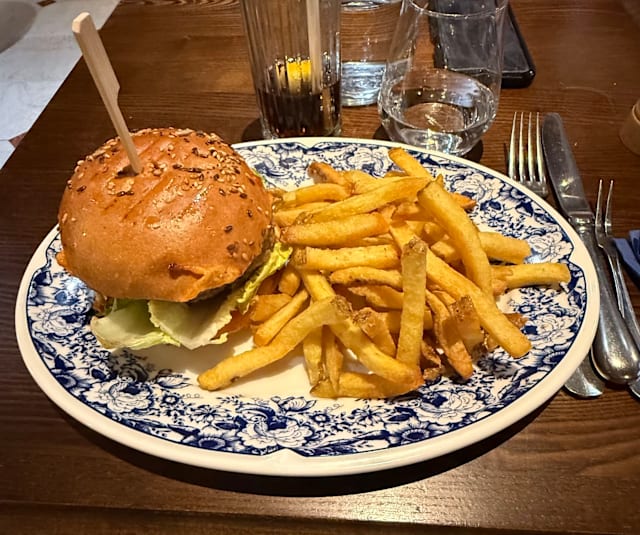 3/10Very bad experience. We booked a table for 6 persons and arrived on time. We got the menus after 20 minutes and it took the food (5 main courses and 1 entree as there are no vegetarian options besides 2 types of salads). It took the food OVER AN HOUR, to be served. When we did get it it was very disappointing. Hamburger dish which includes absolutely no vegetables (not a slice of tomato, onion nor pickles). Just a piece of meet inside a ban. It came with a very small kids-meal like portion of fries which also felt as if they were reheated. This was also the side dish for the steak tartare alongside a “salad” which included some small portion of not fresh lettuce and exactly 3 halves of a cherry tomato. To be avoided.