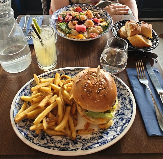 10/10We had a delicious meal. Salmon with broccoli and red cabbage, and fish and chips. Excellent service!
