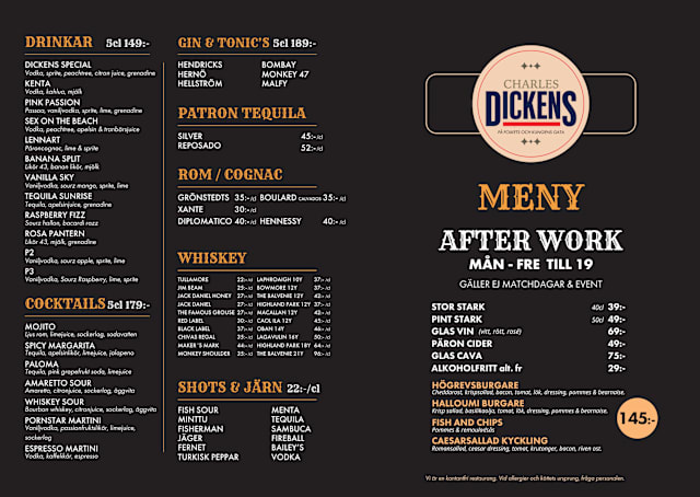 FIN PUB I SOFO - Charles Dickens är en av de där pubarna som verkligen står ut från mängden. Hit kommer folk från hela staden och samlas för att tillsammans göra en trevlig kväll möjlig.