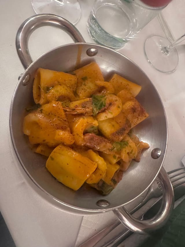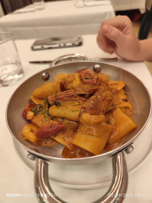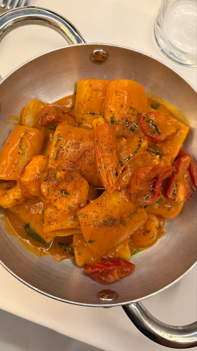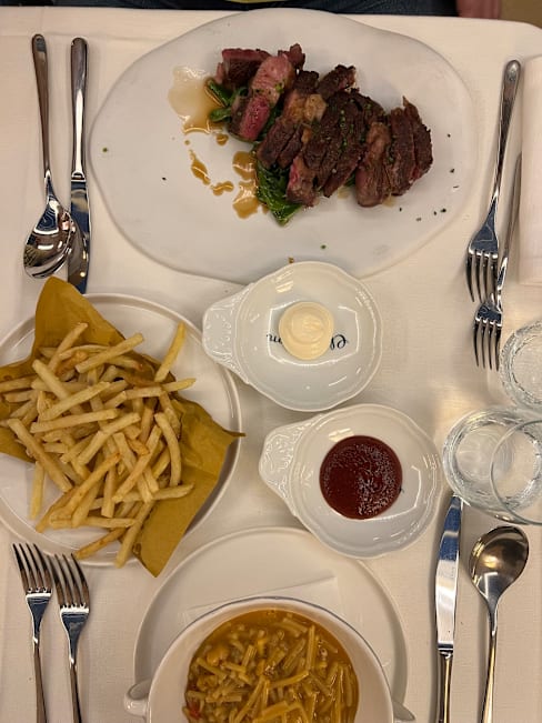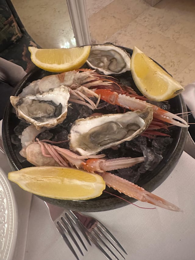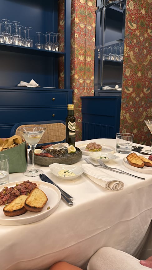 7/10Service was immaculate, although bordering on obsessive at times. The interior is charming and a perfect intimate setting- but the neighbourhood is not the nicest. Cocktails were not available to us (unsure why), we still managed to have 2 nice gin sours. To start we had oysters & raw red prawns which were pleasant, we then had a fish tartare, &2 beef tartares, all tartares were average, though 1 of the beef tartare appeared to be made with older meat. For our mains we had the swordfish involtini (which claims to be their signature)& the beef chateaubriand. The beef was cooked well but was slightly bland, missing salt (our salt grinder was empty). The involtini, however, was the most disgusting thing we had the displeasure of eating in our entire lives. Awful texture, awful taste, I’m not sure there was any swordfish in it, only raisins. There was a salad also, but by London standards I would hardly call it that. The fries were great, the portion miniscule. We didn’t take a dessert