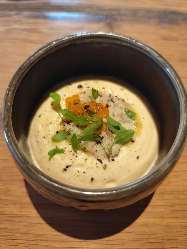 - Pommes de terre primeur grillées, aïoli léger et jus fumé