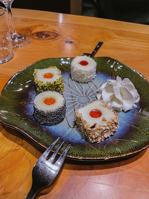 6/10The food was very nice and the restaurant has good vibes. The service was okay, but they kept coming over to our table to take our plates out without us being finished (it happened 9 times). Plus somehow dogs are allowed at the restaurant and we were sitting next to one who kept howling and making noice throughout the whole dinner.
